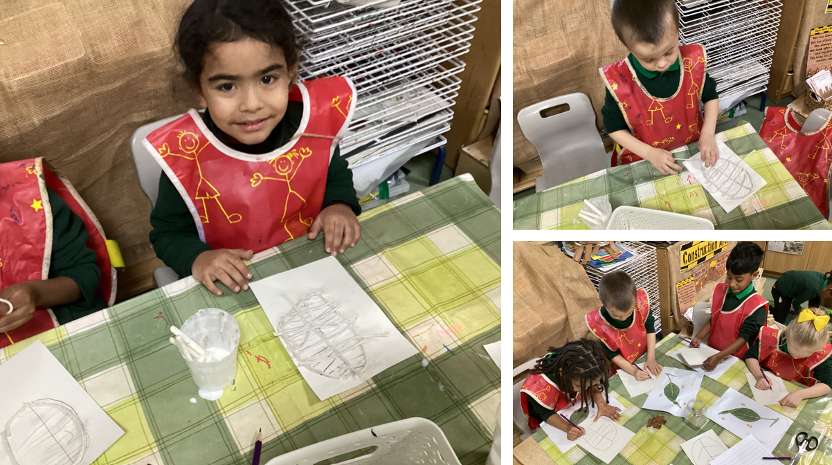 We are using string to create leaf prints for our Gruffalo Cafe tree...