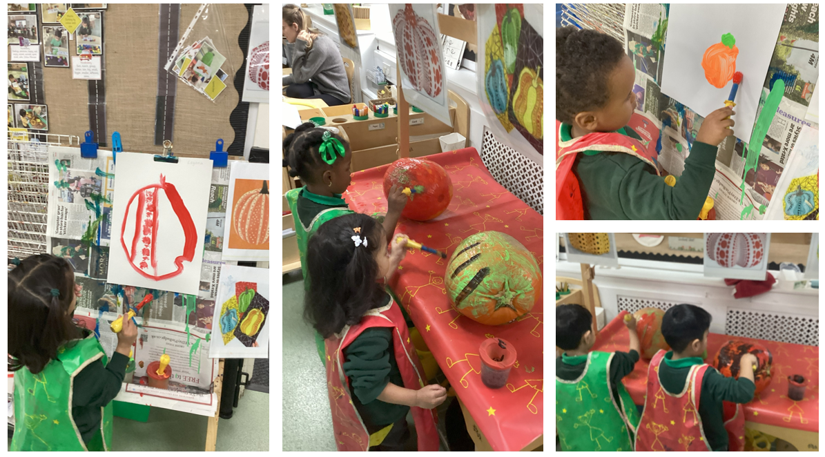 And, of course, we've had some autumn pumpkins. We've decorated them with paint, creating unusual patterns, and we've created our own images on the easle.