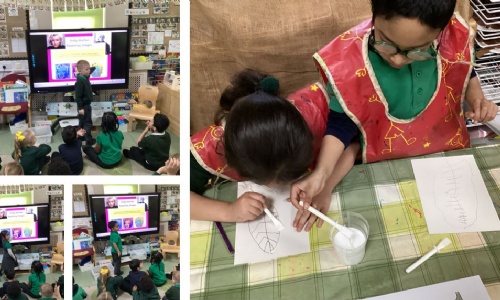 We are using string to create leaf prints for our Gruffalo Cafe tree...
