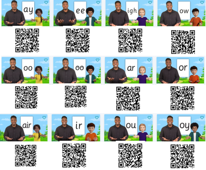 Scan these QR codes and practise your phonics: