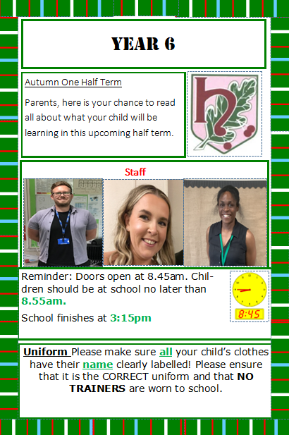 Here is a summary of what your child will be doing during the Autumn 1 term.